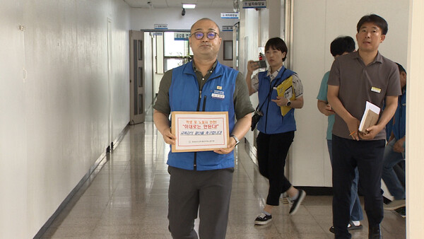 LG헬로비전 자료화면. 재판매 및 DB금지. 경상남도교육청공무원노동조합이 '학교 안전 책임 업무'에 대한 박종훈 경남도교육감의 결단을 촉구했습니다. 오늘(12일) 경남교육노조는 경남도교육청 브리핑룸에서 기자간담회를 열고 "도교육청이 학교 보건·영양 교사에게 산업안전보건 담당 업무를 지정해야 한다"고 밝혔습니다. 또 "경남을 제외한 전국 16개 시도교육청에서는 관리감독자인 교장 아래 분임관리자로 영양교사가 안전 업무를 맡고 있다"고 설명했습니다. 기자간담회 이후 경남교육노조는 교육감실을 찾아 서한문을 전달했습니다. 최근 학교 급식소 현장에서 안전 책임 업무와 관련해 영양사와 영양교사, 행정실, 학교장 등이 서로 이견을 보이며 마찰을 빚고 있습니다. 앞서 박 교육감은 이 문제를 두고 지난 10일 있었던 회의에서 "배심원 제도를 도입해 합리적인 방안을 찾겠다"는 의견을 밝혔습니다.
