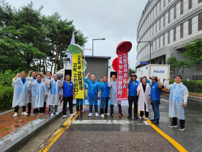 [전국시도교육청 공무원노동조합 제공] (세종=연합뉴스) 김수현 기자 = 전국시도교육청 공무원노동조합은 29일 "학교 민원 대응팀에 행정실장을 포함하는 것은 민원 대응팀 전반적인 업무를 행정실장에게 전가하려는 꼼수"라고 비판했다. 교육청 공무원노조는 이날 정부세종청사 앞에서 집회를 열고 "학생과 관련한 학부모 민원은 교장, 교감, 담당 부장 교사 등 교무실 내부에서 담당해야 한다"며 이같이 밝혔다. 교육부는 지난 23일 발표한 '교권 회복 및 보호 강화 종합방안'에서 앞으로 학교장 직속으로 교감, 행정실장, 교육공무직으로 구성된 민원 대응팀이 학교 민원을 접수하겠다는 방침을 밝힌 바 있다. 교육청 공무원노조는 "학생과 관련한 학부모 민원에 지방 공무원이 할 수 있는 것이 없다"며 "학생과 관련한 학부모 민원은 교무실 인원으로 충분히 처리할 수 있음을 교육부는 인지해야 한다"고 지적했다. 이어 "교육부는 이번 대책 마련 과정에 지방공무원과 일절 소통도 없었다"며 "학교 내 민원 대응팀에 행정실장을 즉시 제외해야 한다"고 촉구했다. porque@yna.co.kr